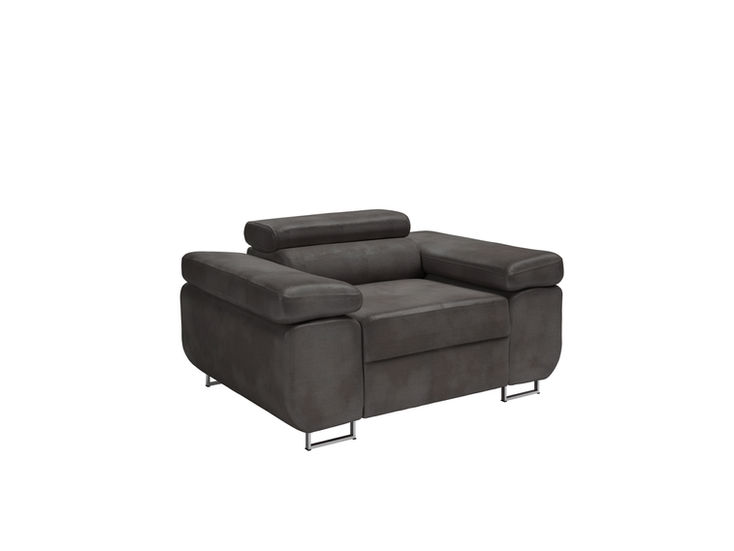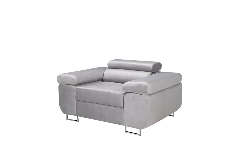 Nowoczesne wzornictwo. Ruchome zagłówki (5 poziomów nachylenia), sprężyny faliste, pianka wysokoelastyczna T-30, metalowe nogi w wykończeniu chromowanym. Dekoracyjne pikowanie. Możliwość wyboru tkaniny (współpracujemy z trzema grupami cenowymi tkanin).